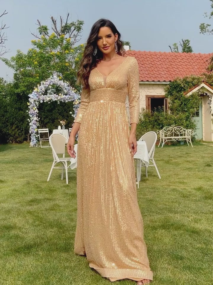 Préparez-vous à rayonner lors de la prochaine noce avec notre robe cocktail de mariage pailletée dorée. Cette création transforme chaque femme en icône de l'événement, grâce à sa coupe élégante, son plissé délicat et sa teinte dorée étincelante. Confectionnée pour mettre en valeur la silhouette et assurer une apparition remarquable, cette robe est l'essence même du glamour et du raffinement pour les instants inoubliables.